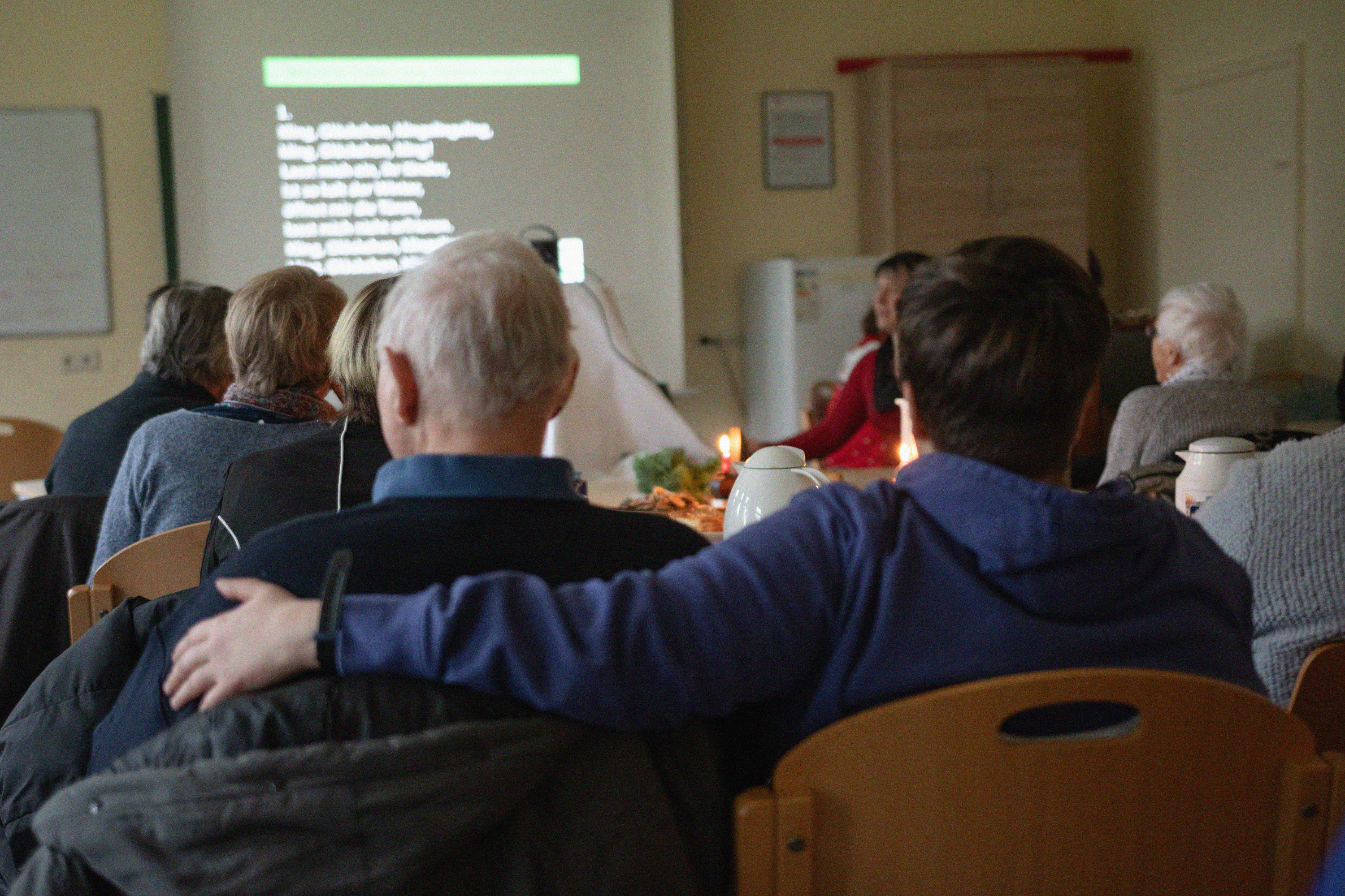 Nach einem großen Mitsing-Konzert mit Valentine & The True Believers fanden an zwei Orten im Kreis Steinburg - dem M1 in Hohenlockstedt, der VHS Horst – regelmäßige Veranstaltungen statt. Diese hatten alle einen generationsübergreifenden Charakter und legten den Fokus auf demenzsensibles Musizieren. Der Schwerpunkt waren dementsprechend plattdeutsche Lieder. Die Teilnehmenden waren neben Menschen mit Demenz deren Angehörige und Freunde, aber auch Menschen, die gerne singen. Durch diese Konstellation konnte viele schöne Momente des Miteinanders geschaffen werden: In Horst sangen regelmäßig die Plattdeutsch-Gruppe der Grundschule zusammen mit den Bewohner*innen des örtlichen Seniorenheims. In Hohenlockstedt gelang es unterschiedlichste Menschen zusammenzubringen und gelebte Teilhabe im Rahmen des gemeinsamen Singens zu ermöglichen.